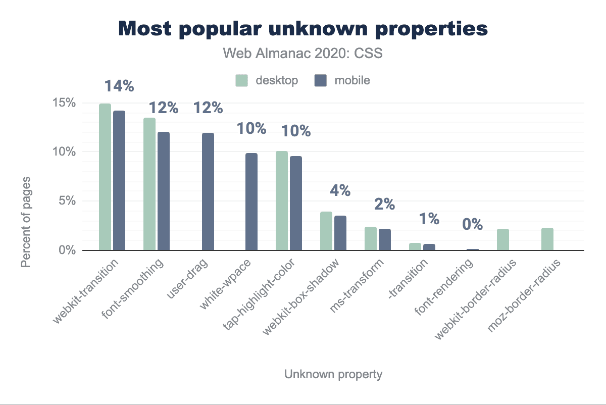 webkit-transitionor-transition) - 43% were an unprefixed form of a property that only exists only prefixed (e.g.