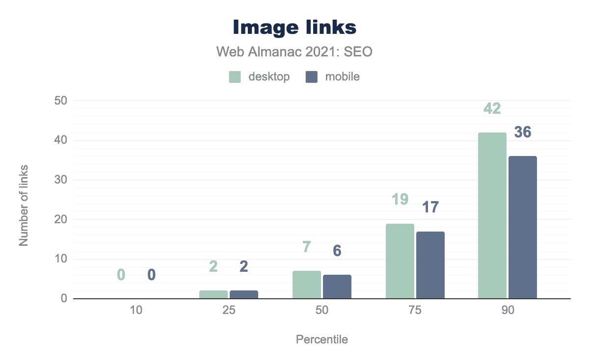 While a significant portion of links on the web are text based, a portion also link images to other pages. 9.2% of links on desktop pages and 8.7% of links on mobile pages are image links. With image links, the alt attributes set for the image act as anchor text to provide additional context on what the pages are about.