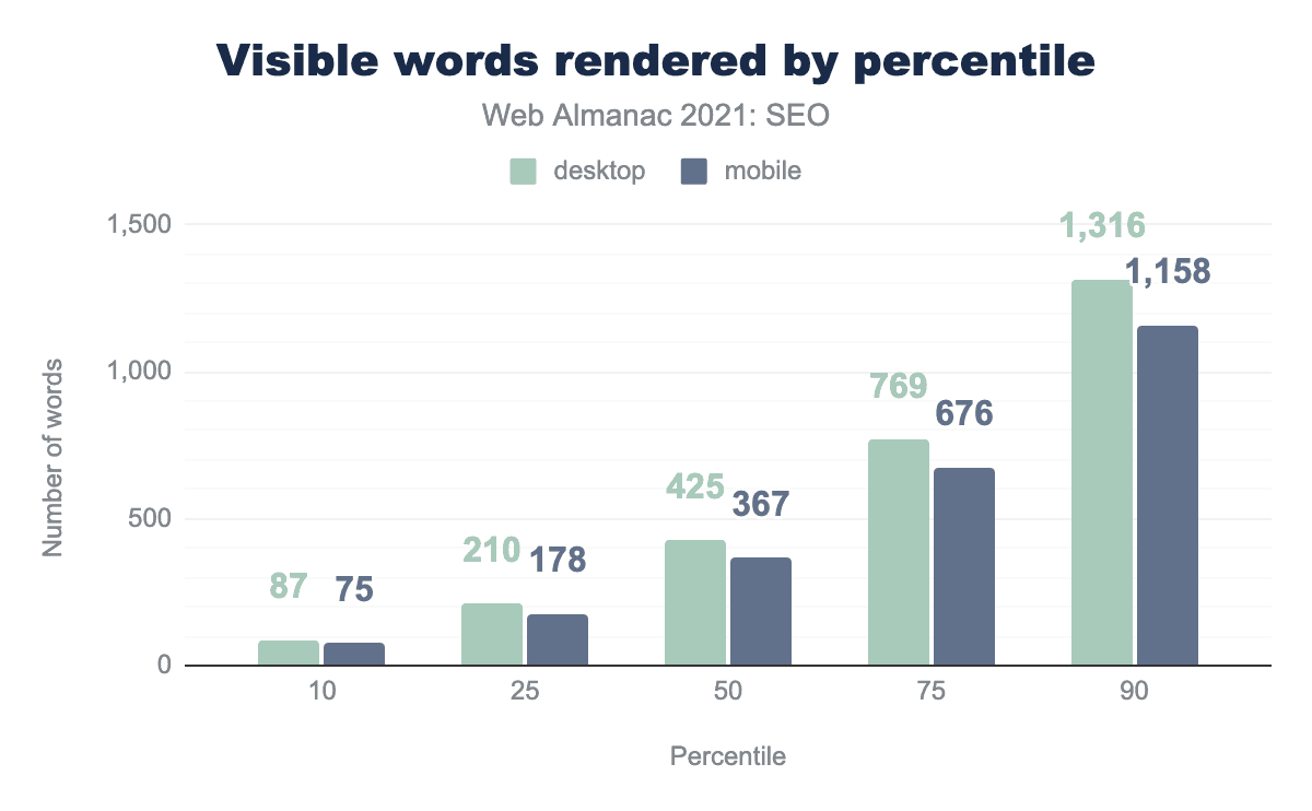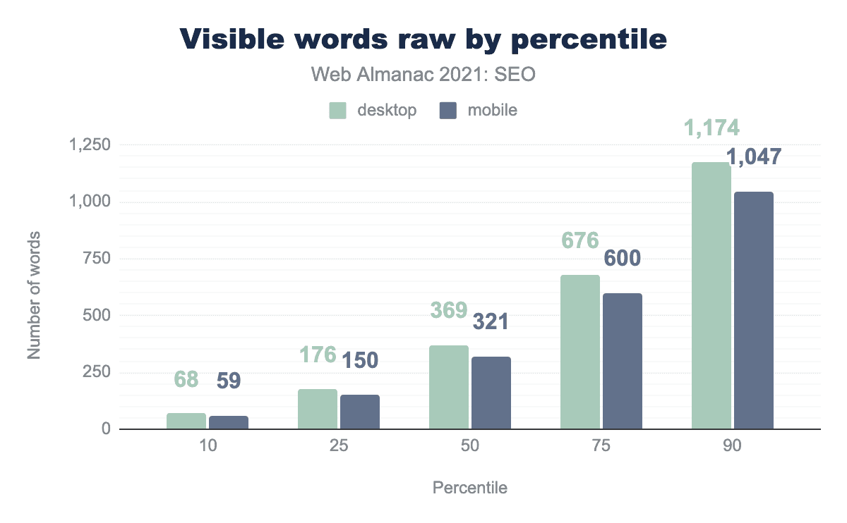 • The median raw mobile page contains 321 words, versus 312 words in 2020.