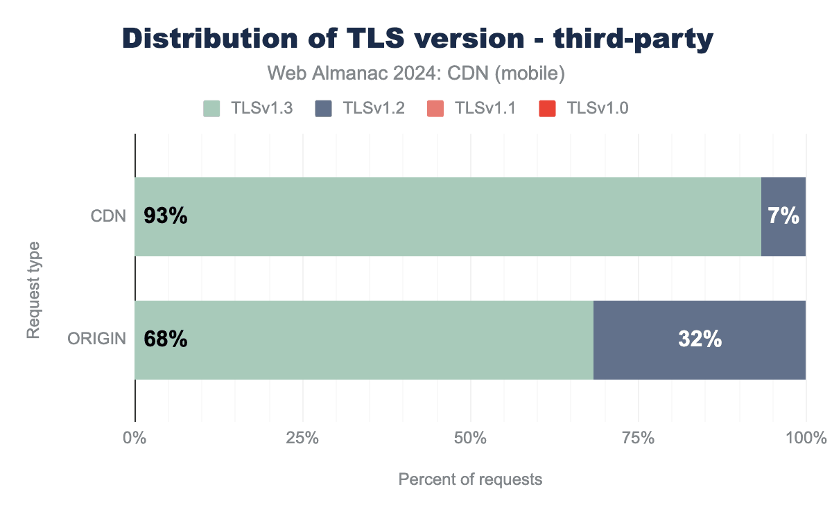 While origin servers have begun to catch up with adoption of TLS 1.3, this further shows how CDNs drive newer features quicker than when web server operators have to perform software and hardware upgrades for the same new features.